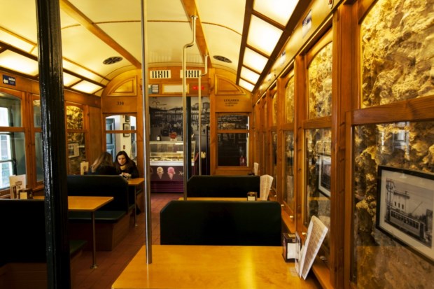 “O meu pai costumava levar-me a um parque em Monsanto onde tinha um eléctrico de brincar (no Alvito). Agora, este café foi o mais próximo que eu consegui arranjar para ''conduzir'' um eléctrico sem parecer mal”, conta. Aliás, Nuno projectou este café com ajuda do pai, também ele arquitecto, contando ainda com o marceneiro Bruno Reis, da Noble Table, empresa especializada no restauro e fabrico de móveis que executou, peça por peça, num elaborado trabalho de carpintaria, esta réplica feita à escala - mas que até saiu, por conveniência, um pouco maior que o original.